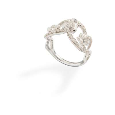 of scrolling foliate design, set throughout with graduated round brilliant-cut diamonds, stamped 750