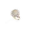 claw-set with an oval opal cabochon, in a single border of ten round brilliant-cut diamonds, indistinctly marked