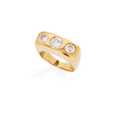 claw-set with three graduated round brilliant-cut diamonds, indistinctly marked