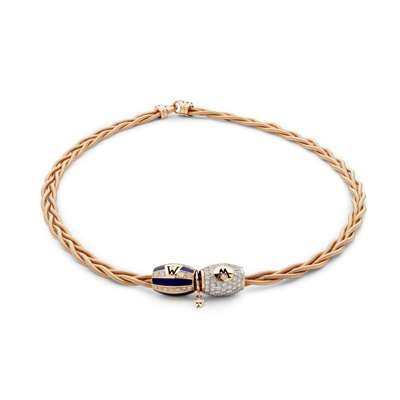 composed of four woven strands, with a pavé-set diamond rondel, and another with blue enamel and diamond detail, and a small diamond set 'W' pendant, stamped GERMANY 750