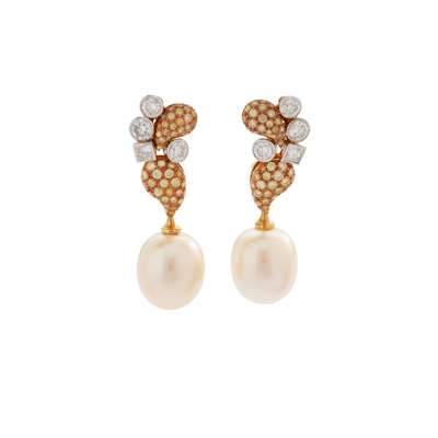 A pair of South Sea pearl and diamond earrings, by Boodle & Dunthorne