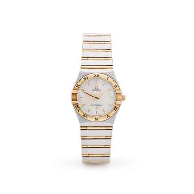 stainless steel case, quartz movement, round mother of pearl dial with applied gold baton hour markers, sword hands with lume inserts, gold bezel with Roman numerals in black, with observatory logo and serial number to the caseback, on a stainless steel bi-colour bracelet strap with signed deployant clasp marked 6552/864 to the interior, no box and papers