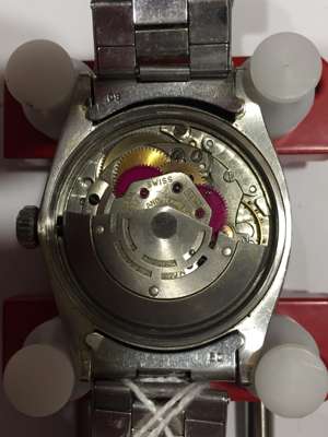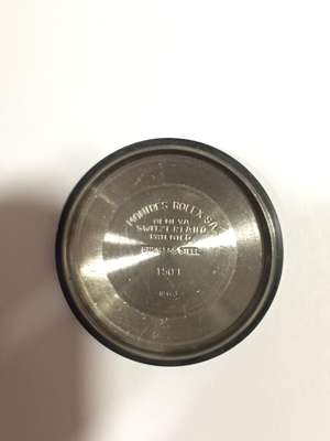 Oyster Perpetual Date model 1501, stainless steel case, signed Rolex calibre 1560 automatic movement, 1963 from serial number between lugs, round dial with applied stainless steel baton hour markers, date aperture at 3, outer seconds track in black, dauphine hands with lume inserts, engine turned bezel, screw-down crown with coronet, on a stainless steel tapered hollow-link Oyster bracelet strap with 60 to the end link, Rolex signed foldover clasp with 264, no box and papers