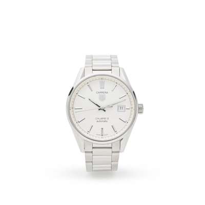 Carreran Calibre 5 model WAR211B-4, stainless steel case, signed TAG Heuer automatic movement, round white dial with applied stainless steel baton hour markers, date aperture at 3, raised outer seconds track with Arabic numerals, crown with TAG Heuer logo, exhibition caseback with model and serial number to the edge, on a stainless steel bracelet strap with signed TAG Heuer clasp, in service case, no box and papers