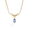 part collet-set with an oval-cut Tanzanite, suspended from a pavé-set diamond panel, to an integral chain, stamped 750 18