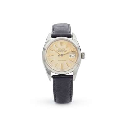 Oyster Perpetual Air-King Date model 5700, stainless steel case, signed Rolex calibre 1530 Perpetual movement numbered 60333, 1959 from serial number between lugs, round dial with applied gold-coloured coronet at 12 and applied bevelled rhombic hour markers, date aperture at 3, gold-coloured dauphine hands, black centre seconds and, screw-down crown with coronet, on a later strap, no box and papers