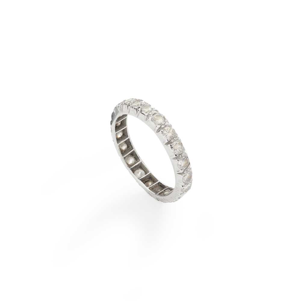 set with a continuous row of round brilliant-cut diamonds, unmarked