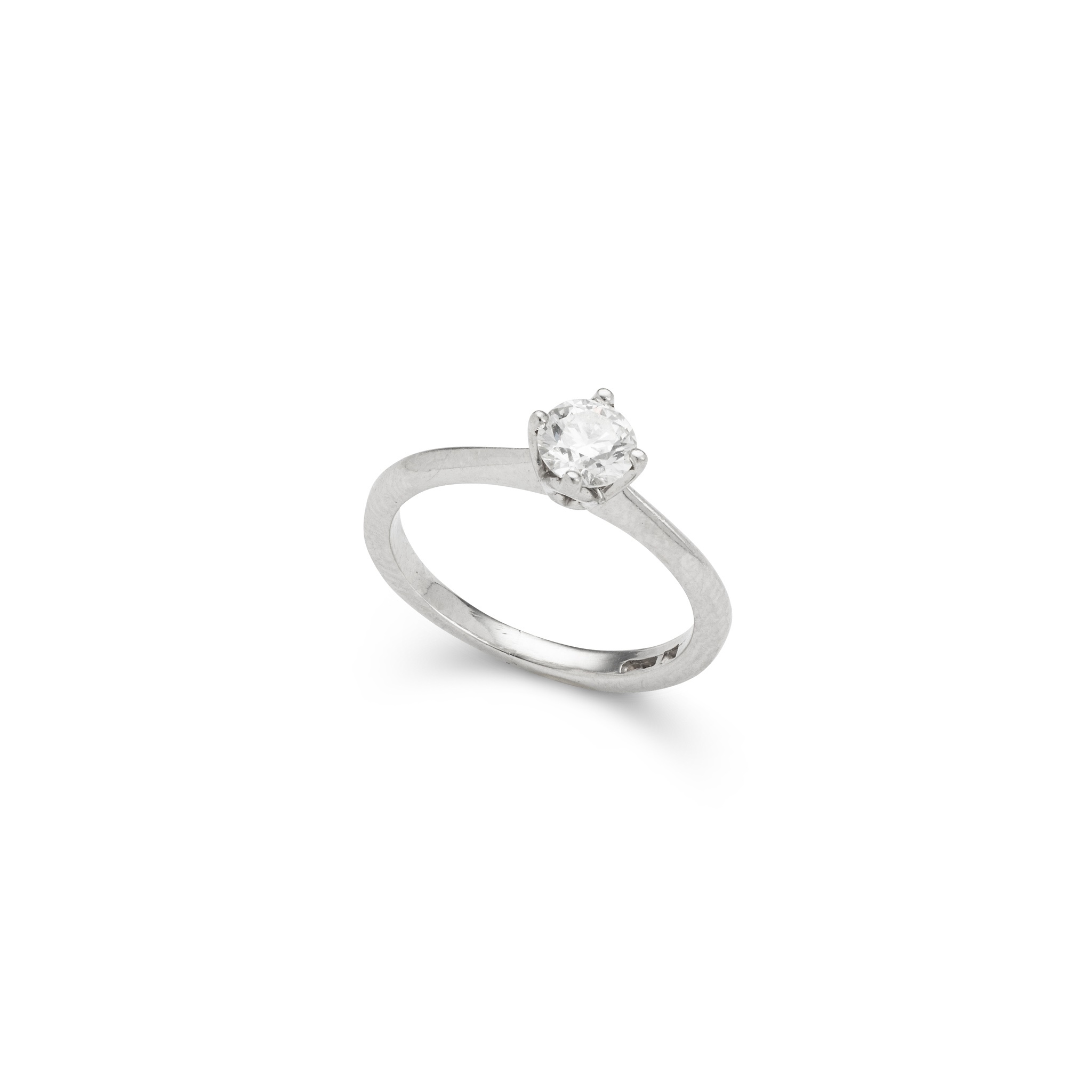 claw-set with a round brilliant-cut diamond, modelled in platinum