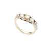 claw-set with a fancy-yellow round brilliant-cut diamond and four graduated colourless round brilliant-cut diamonds, each shoulder set with small round-cut diamond detail, unmarked