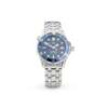 Seamaster Professional model, stainless steel case, quartz movement, round blue dial with lume lot hour markers, date aperture at 3, skeleton hands with lume terminals, centre seconds hand, blue bezel with count-up scale, on a stainless steel bracelet strap with signed Omega deployant clasp, in box, no papers