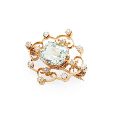 An aquamarine and diamond brooch