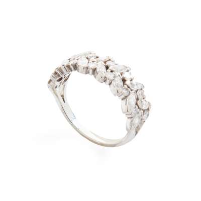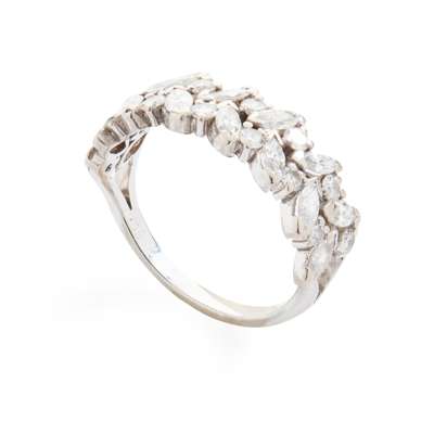 claw-set with two rows of alternating brilliant and marquise-cut diamonds, unmarked