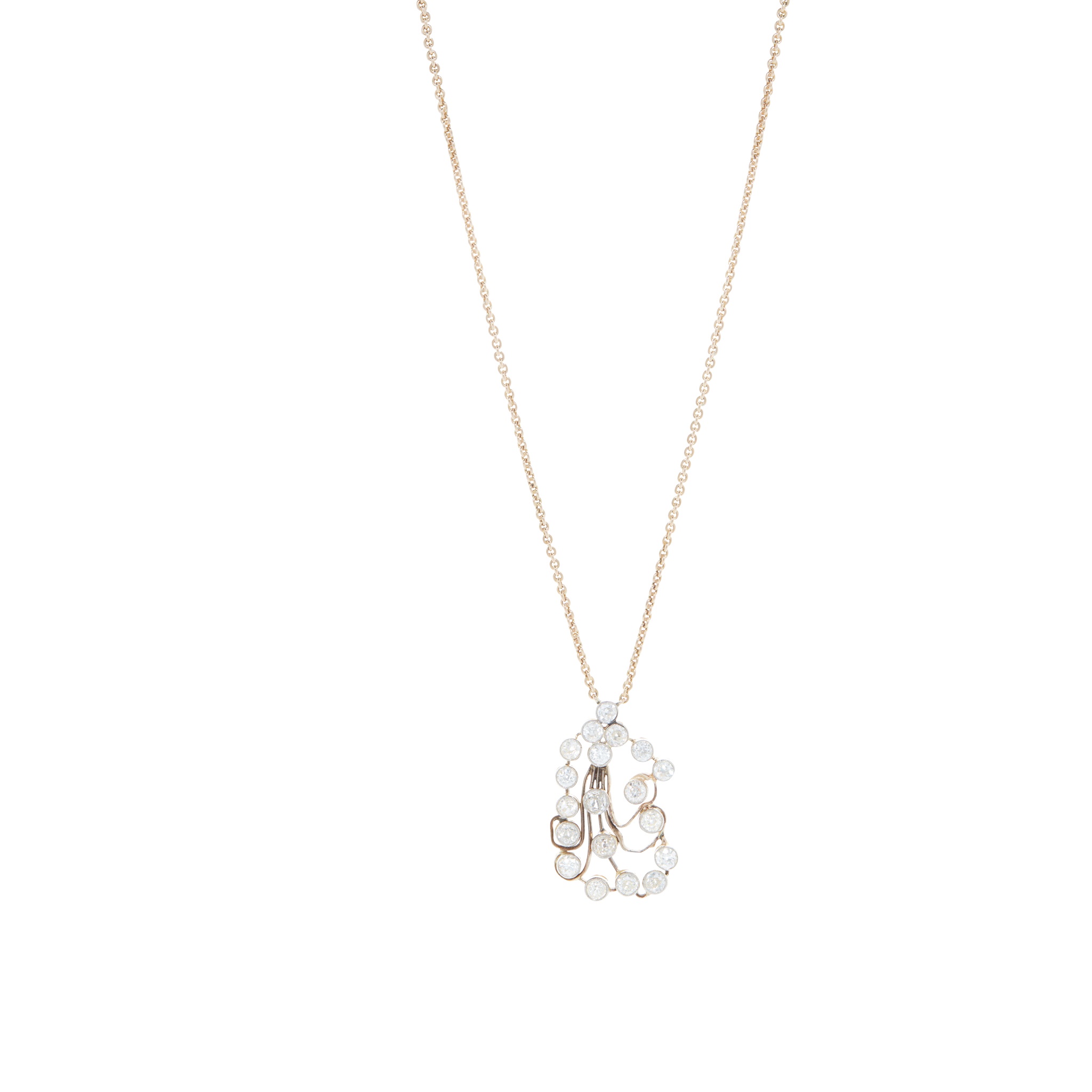 of abstract design, millegrain-set with nineteen old brilliant-cut diamonds, unmarked; to a trace-link chain