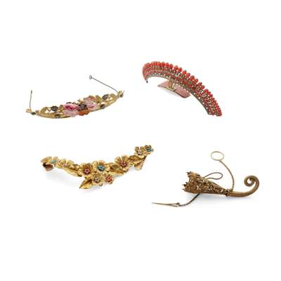 Three gilt-metal and gem-set tiaras Y