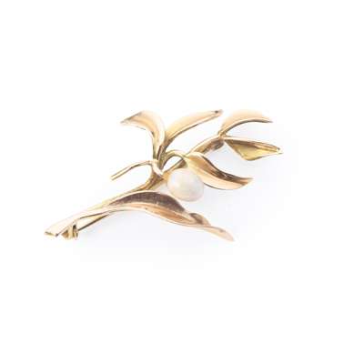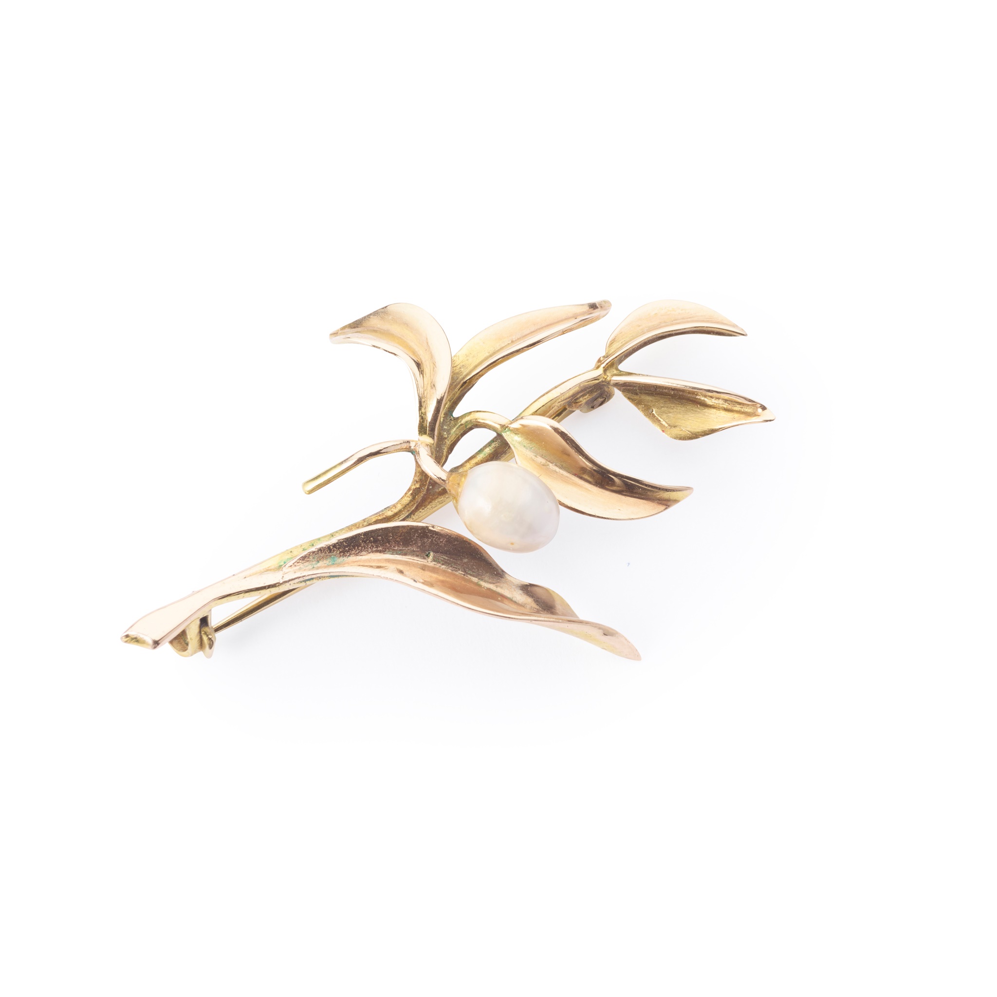 of foliate design set with a single Scottish freshwater pearl (one deficient), mounted in 9ct gold