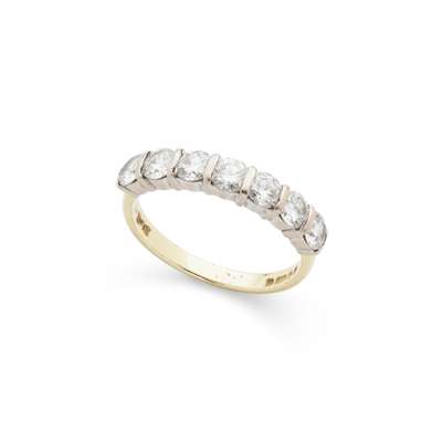 bar-set with seven brilliant-cut diamonds, mounted in 18ct gold