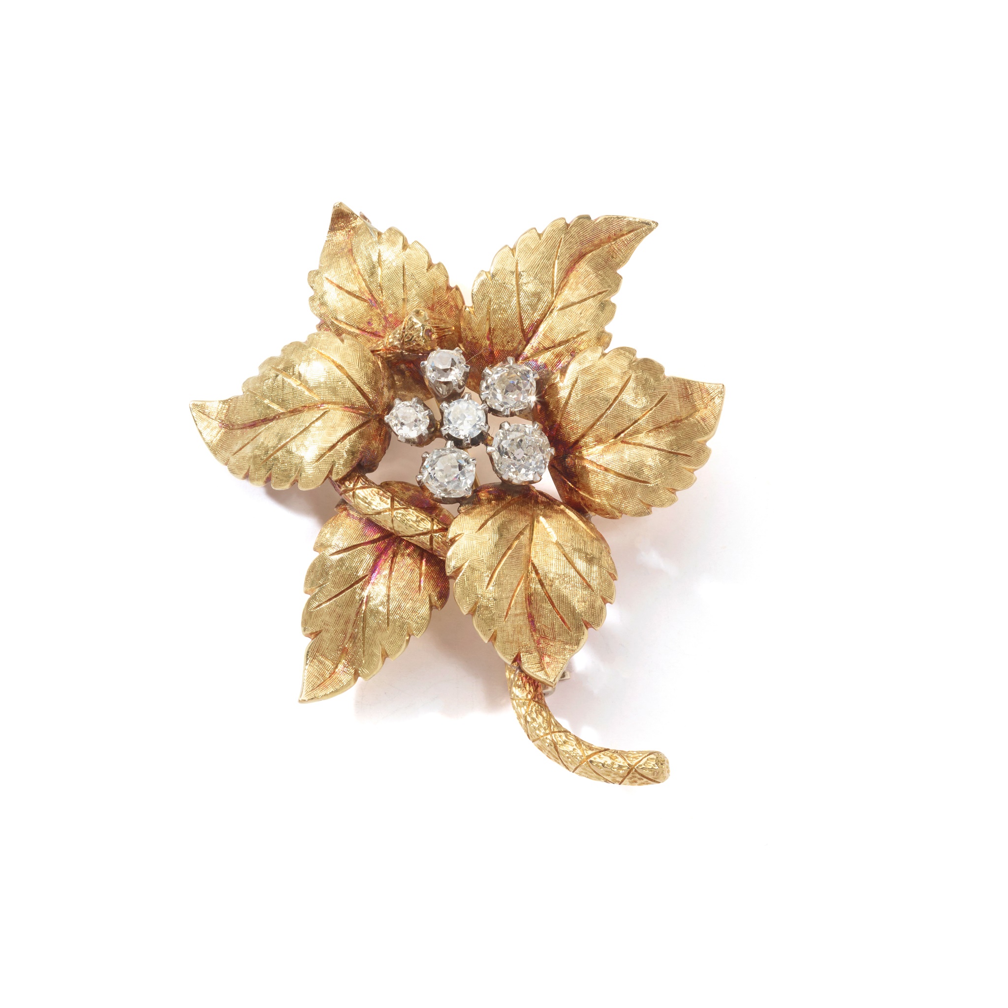 A diamond-set flower brooch