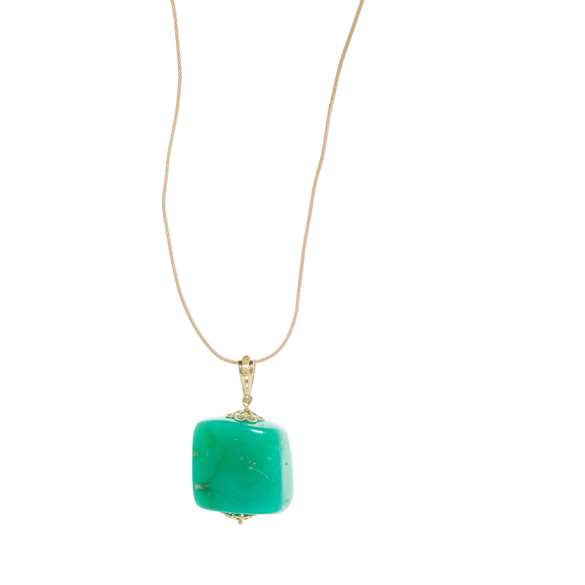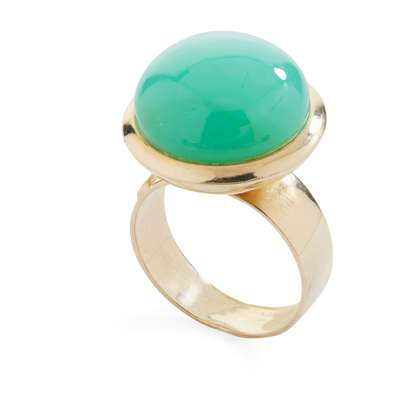 the pendant suspending a large polished chrysoprase, to a woven link necklace stamped 750; the ring set with a cabochon chrysoprase, stamped 750
