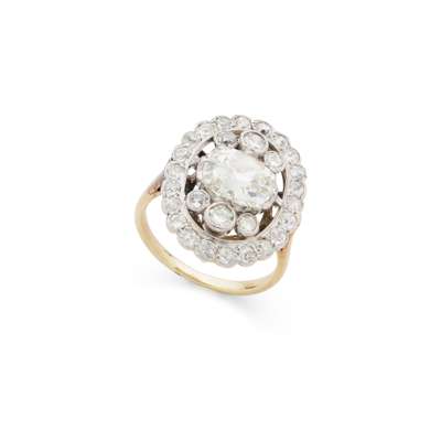 claw-set with an old cushion-cut diamondwithin an old brilliant-cut diamond surround, unmarked