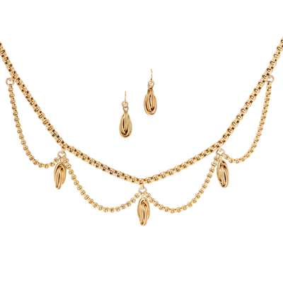 of swag design with lozenge-shaped drops, unmarked; the matching earrings to hook fittings