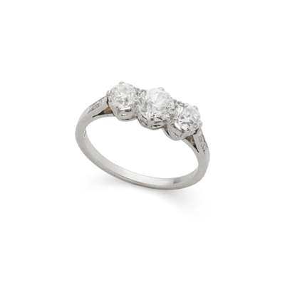claw-set with three old brilliant-cut diamonds, each shoulder set with three single-cut diamonds, unmarked