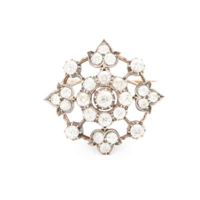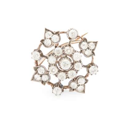 of stylised floral design, set throughout with old brilliant-cut diamonds, detachable brooch fittings, unmarked