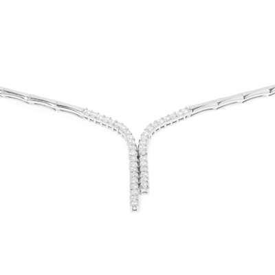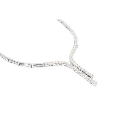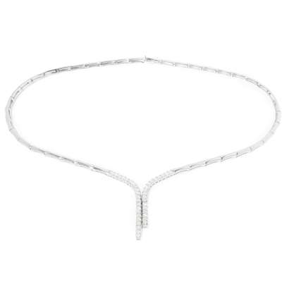 the front claw-set with brilliant-cut diamonds, to a polished rectangular 18ct white gold link chain