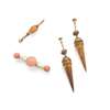 of tapering pendant form with beaded detail, screw fittings stamped 9ct; together with a cabochon coral brooch, unmarked; and a carnelian bar brooch, makers mark CC