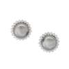 Each claw-set with a Tahitian pearl in a border of small round brilliant-cut diamonds, post and butterfly fittings, stamped 750