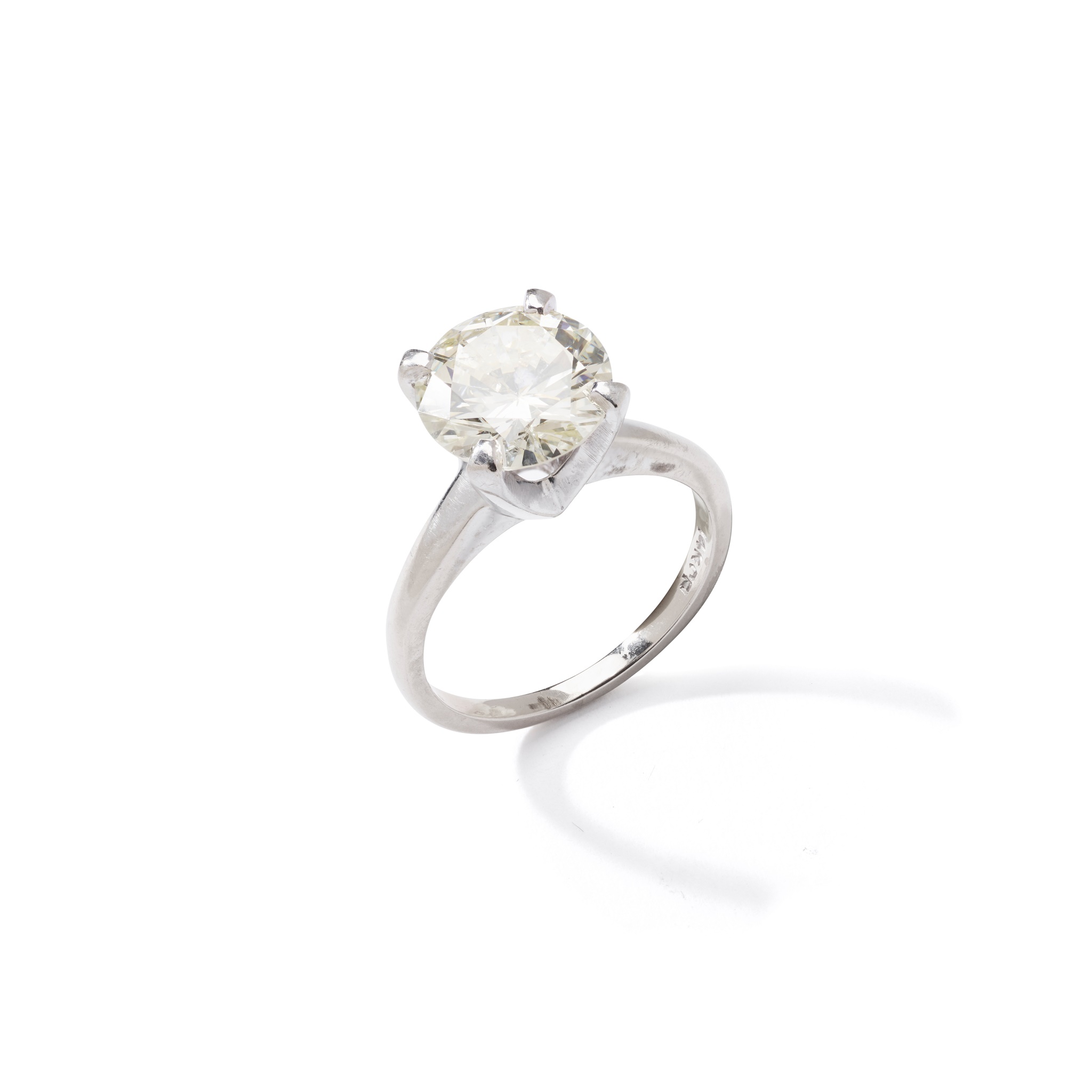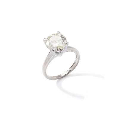 Claw-set with a round brilliant-cut diamond, approximately 3.00cts, stamped 14K