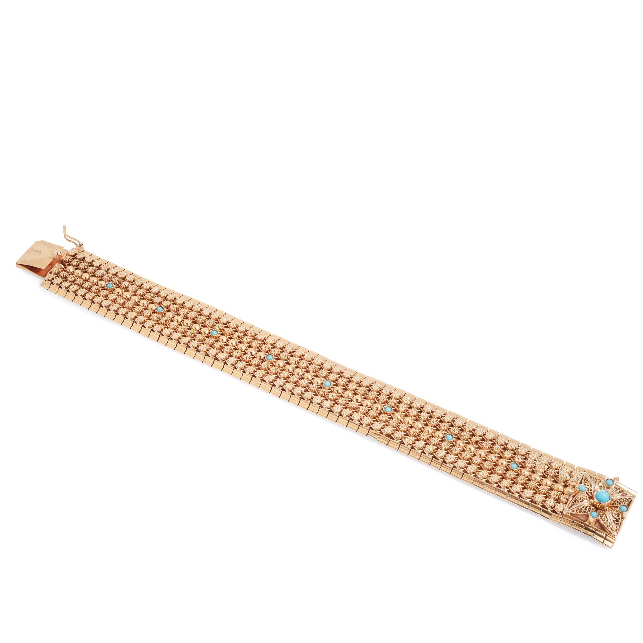 Of broad design composed of beaded links, set with cabochon turquoise, Portuguese marks to clasp