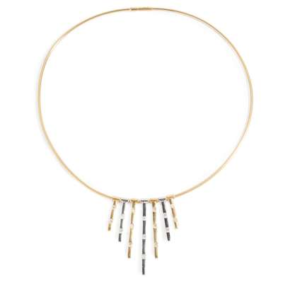 Composed of alternating yellow and white gold fringes, each set with round brilliant-cut diamonds, to a snake-link chain, modelled in 18ct gold