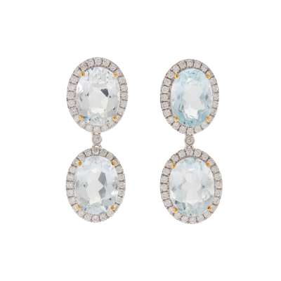 A pair of aquamarine and diamond earrings