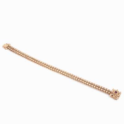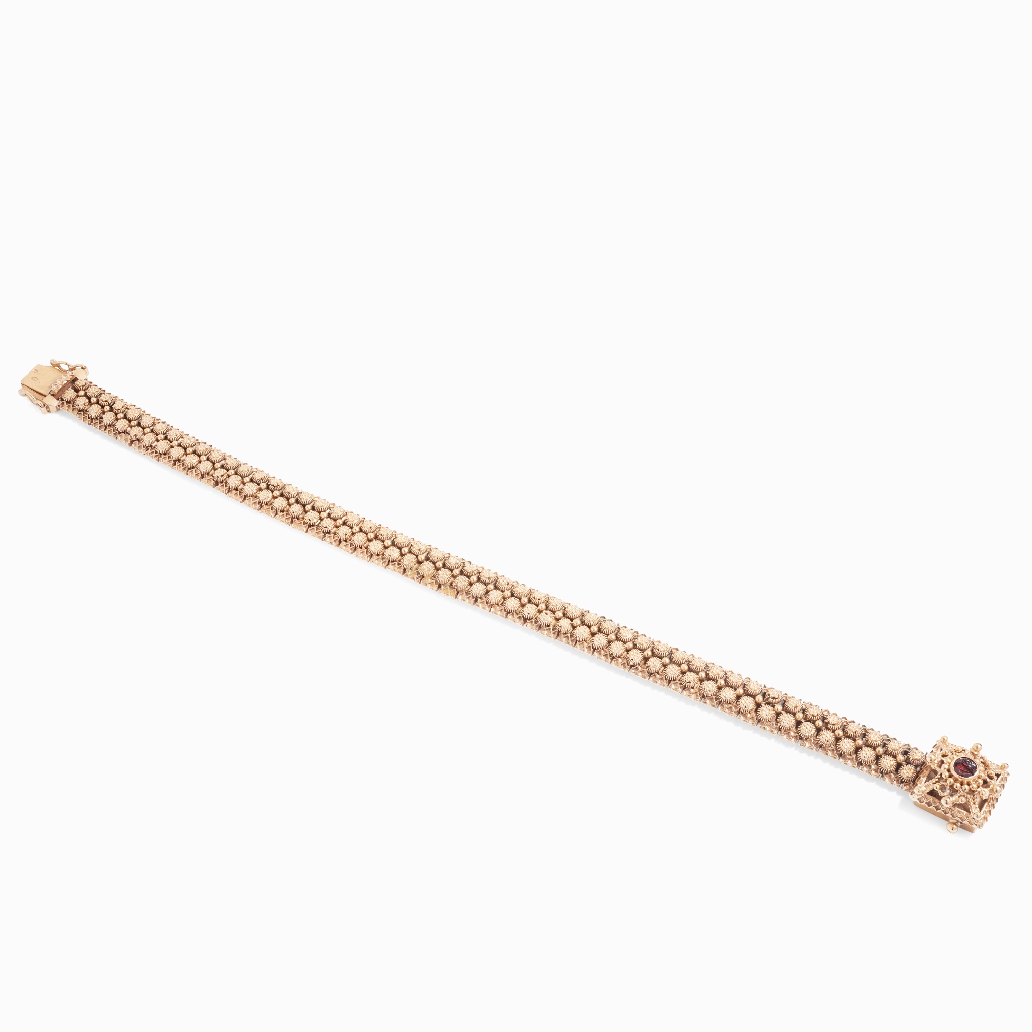 Composed of beaded textured links, the clasp set with a round-cut garnet, Portuguese marks to clasp
