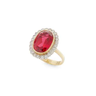 A synthetic ruby and diamond cluster ring