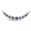 Of traditional design, set with nine graduated oval cushion-cut sapphires, between pairs of old round-cut diamonds, unmarked