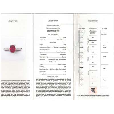Accompanied by a BGL report no. 87011009, dated 20th September 2019, stating that the oval-cut ruby, weighing 1.30cts, is of Burmese origin showing signs of minor enhancement