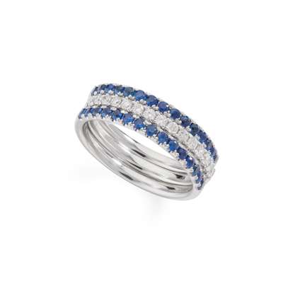 Each set with a row of round-cut diamonds or sapphires, stamped Au750