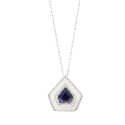 An iolite, agate and diamond pendant