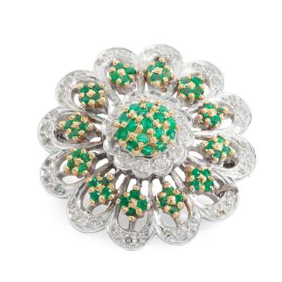 Of floral design, set throughout with graduated eight-cut diamonds and round-cut emeralds, unmarked