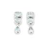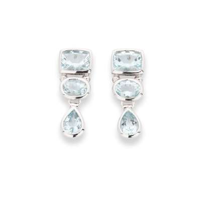 Each collet-set with a cushion, oval and pear-shaped aquamarine, post and clip fittings, stamped 750