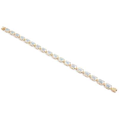 Collet-set with a row of eighteen cut-cornered rectangular step-cut aquamarines, stamped 18k 750