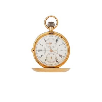 J & W. Mitchell Glasgow, retailer: An 18ct gold hunter-cased gentleman’s chronograph
