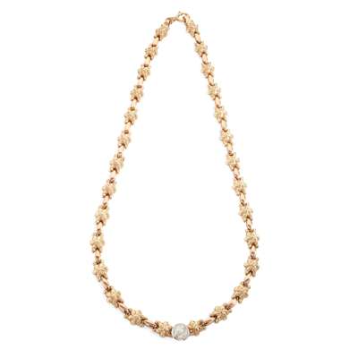 Collet-set with an old round-cut diamond, weighing approximately 1.40cts, to stylised floral links, stamped 9ct