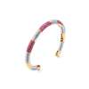 Designed as a sprung torque pavé-set at intervals with round-cut pink sapphires, between sprung and polished sections