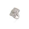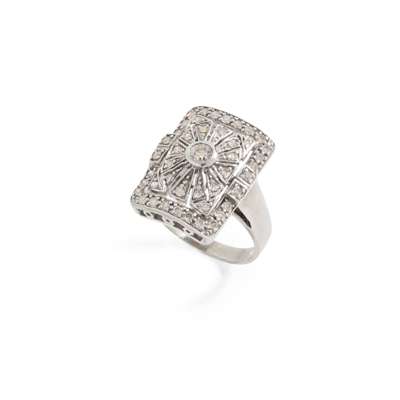 Of pierced rectangular design, set throughout with round brilliant and baguette-cut diamonds, plain band, stamped 9k