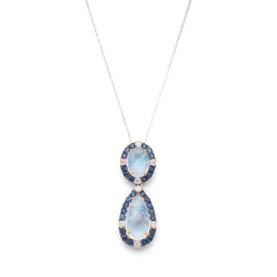 A moonstone, sapphire and diamond pendant