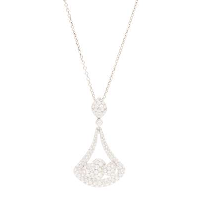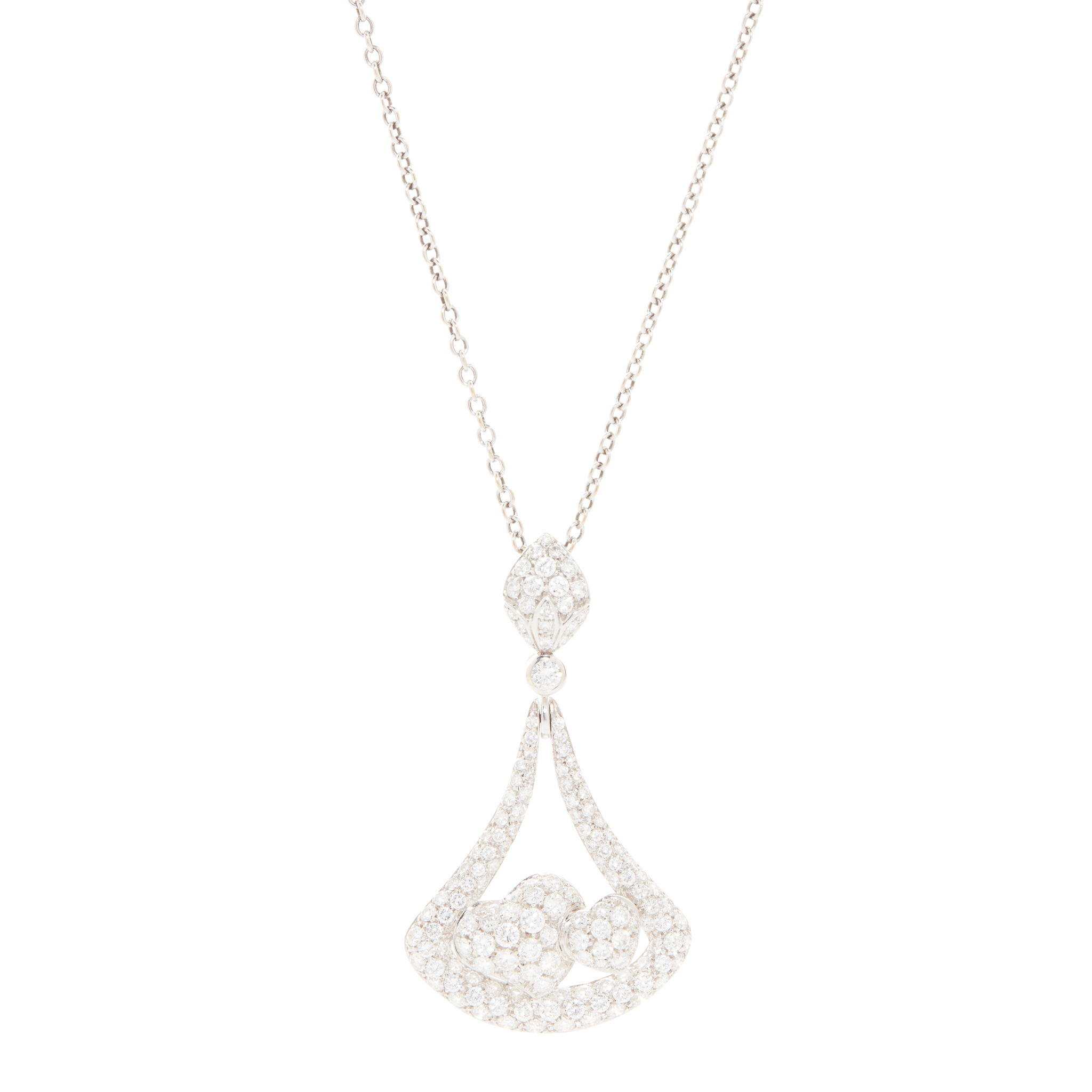 Of open tapering design with double heart motif, pavé-set throughout with graduated round brilliant-cut diamonds, to a trace-link chain, stamped 750
