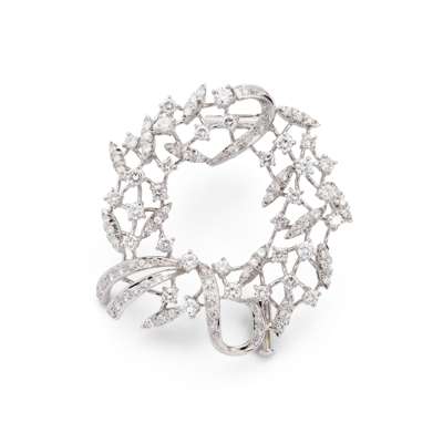 Of pierced wreath design, set throughout with graduated round brilliant-cut diamonds, UK hallmarks