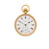 Frosted gilt three-quarter plate movement jewelled with screwed chatons, lever escapement, cut & compensated bi-metallic balance, blued steel overcoil hairspring, white enamel dial with Roman numerals, subsidiary seconds, hinged gold case with plain reverse. Dial and movement signed, case stamped JR